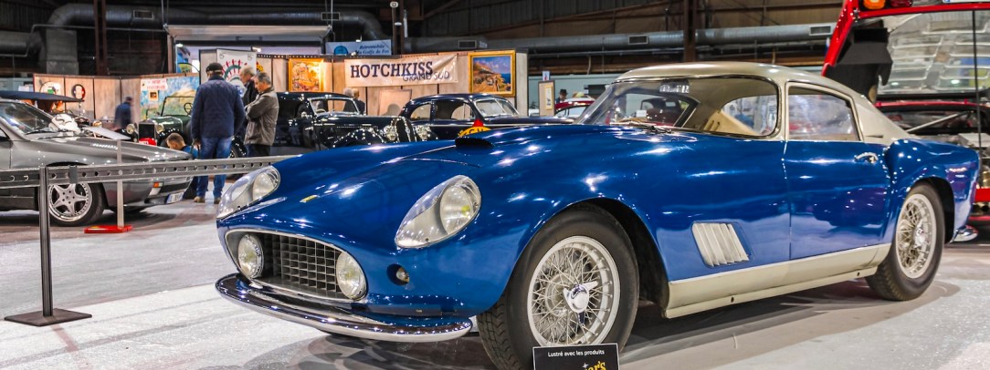 Équipée d’une carrosserie berlinetta par Scaglietti. Caisse bleu/gris.